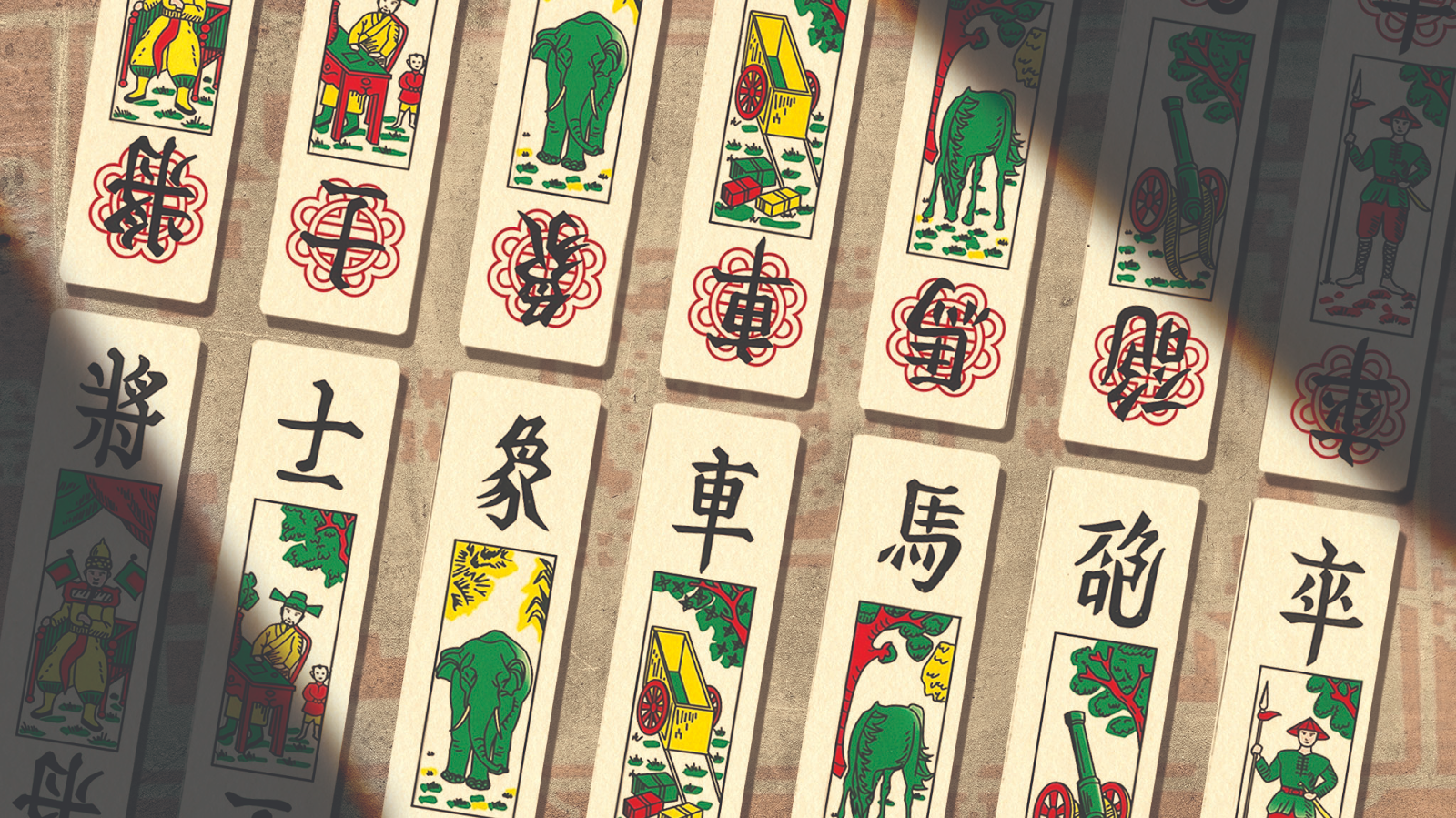 Các lá bài gồm: Tướng, Sĩ, Tượng, Xe, Pháo, Mã, Tốt, được sắp theo thứ tự từ lớn đến nhỏ.